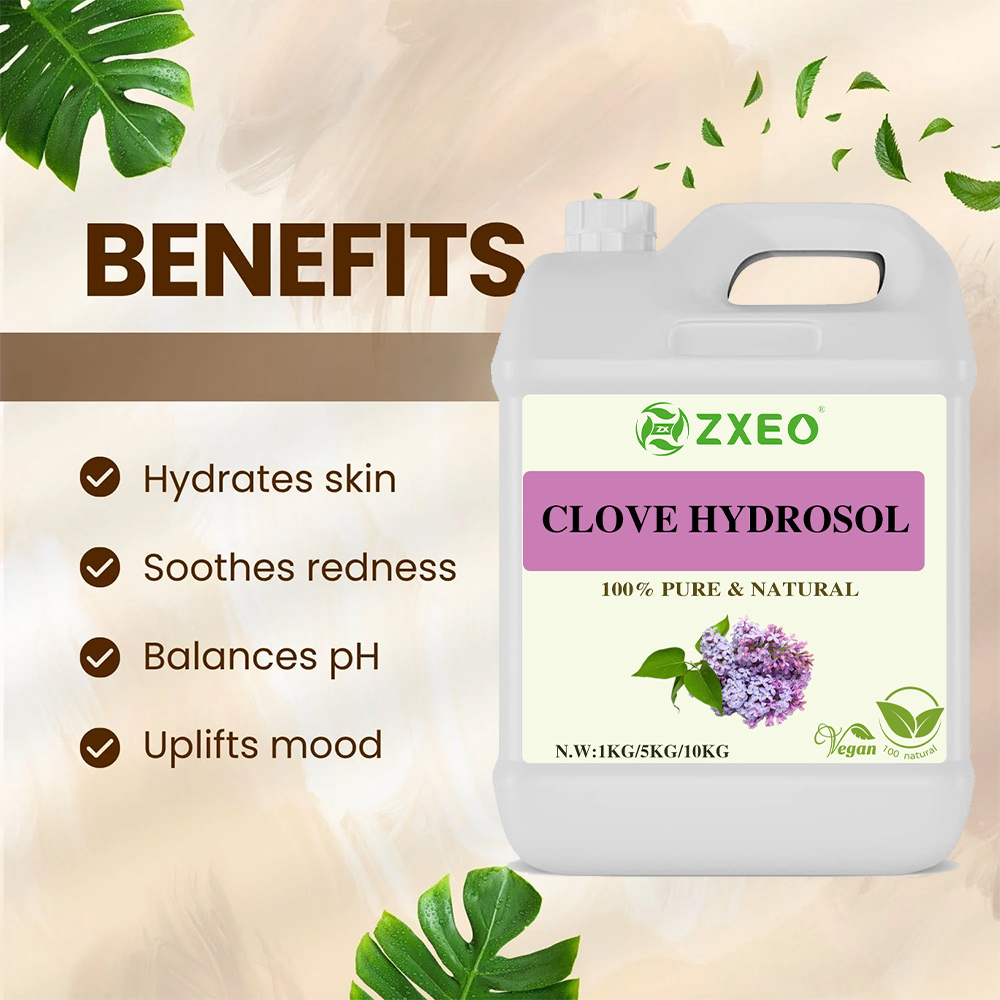 Clove hydrosol possesses significant antibacterial, antifungal, anti-inflammatory, and antioxidant properties. It is commonly used to soothe gingivitis, reduce mouth ulcers and halitosis, and is also suitable as a facial moisturizer, gently conditioning and hydrating the skin. Furthermore, due to its natural components and antibacterial properties, it can also be used to cleanse and soothe minor skin discomforts.