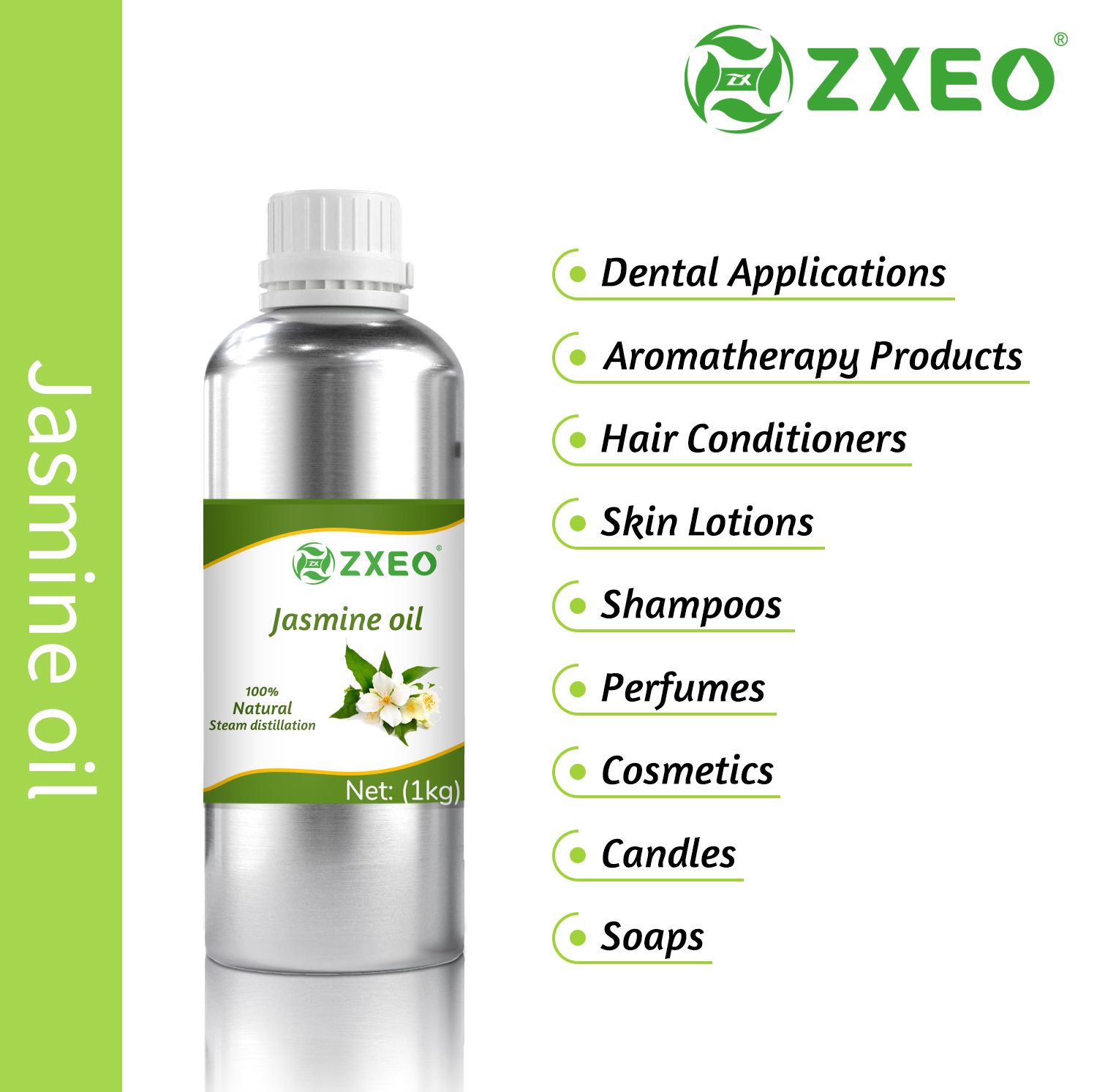 Jasmine Essential oil has a very warm, rich and floral smell, which is used to treat migraines and Depression in Aromatherapy. Its pleasant smell promotes positive mood and good thoughts. It is a natural Aphrodisiac, which is why it is used in Massage therapy to increase male Libido. It is also used in Steaming and Diffusers, to treat cough and congestion. It has antispasmodic properties, which relieves muscle pain, spasms and joint pain. It is an excellent Emmenagogue, and relieves menopausal symptoms as well. It is used in making skin care products for dry and dull skin and anti- ageing cream. It is also used in making skin infections cream and treatment.