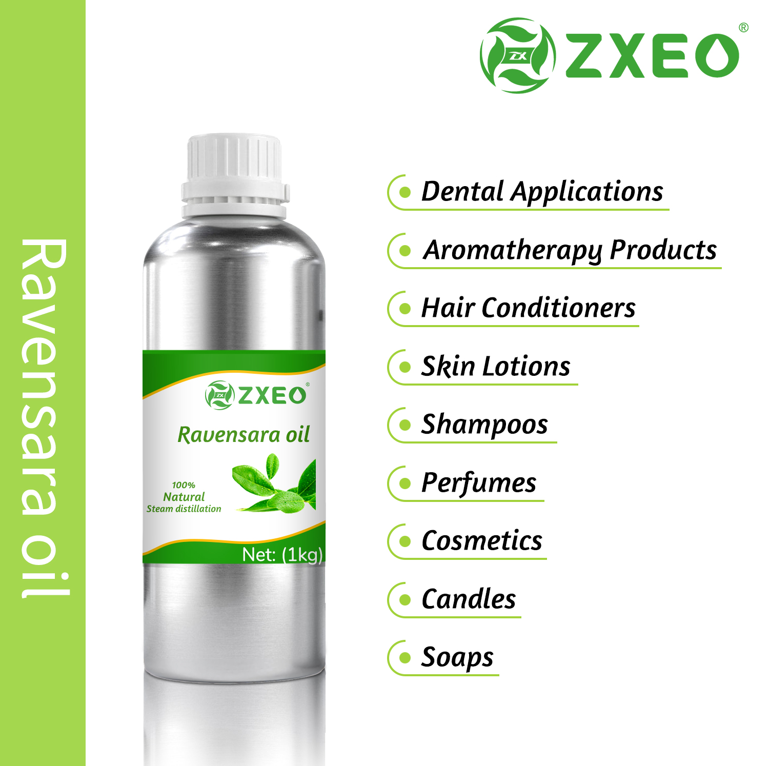 Ravensara Essential Oil has an intense, sweet and fruity aroma which refreshes mind and creates a relaxed environment. That is why it is popular in Aromatherapy to treat Anxiety and Depression and Anxiety. It is also used in Diffusers for treating cough, cold and flu as it provides warmth to the body. Ravensara Essential oil is filled with Anti-bacterial, Anti-microbial and Anti-septic properties, which is why it is an excellent anti-acne agent. It is very popular in skin care industry for treating acne breakouts, calming skin and preventing blemishes. It is also used to reduce dandruff, clean scalp; it is added to hair care products for such benefits. It is also added to steaming oils to improve breathing and bring relief to sore threat. Ravensara Essential Oil is a natural anti-septic, anti-viral, anti-bacterial, anti-infective which is used in making anti infection creams and treatment.