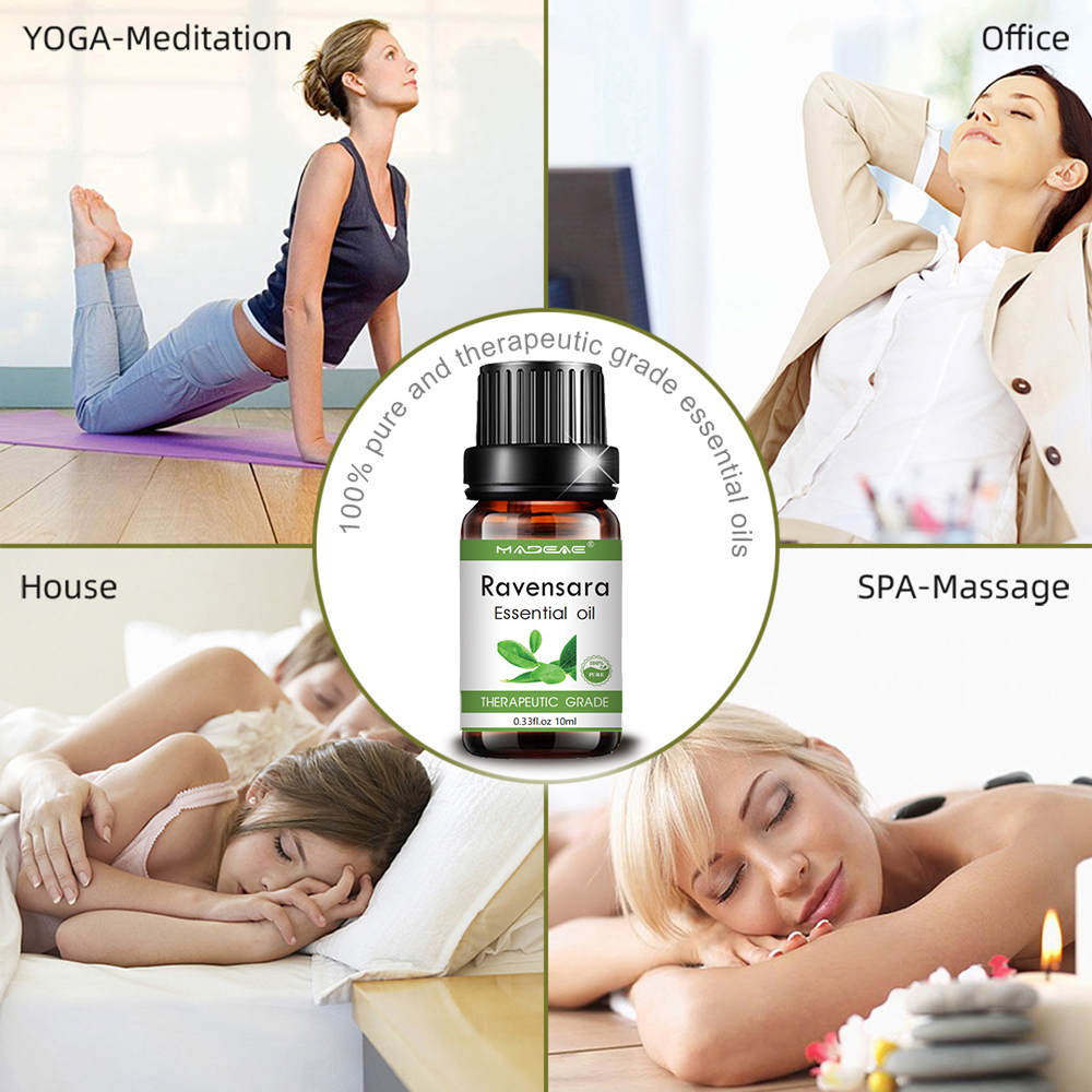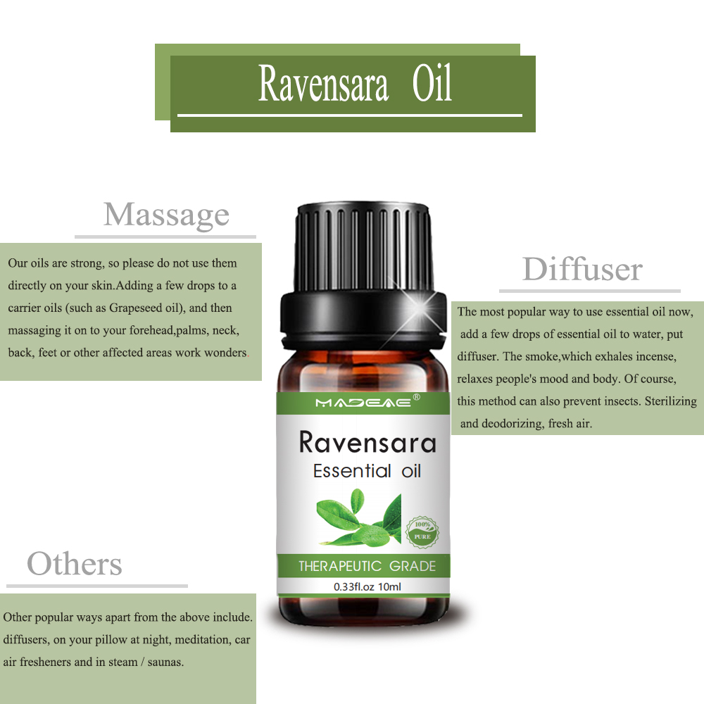 Ravensara leaf essential oil contains a high concentration of eucalyptol, which effectively stimulates the immune system to fight viruses and bacteria, making it particularly suitable for preventing and alleviating symptoms of colds and flu. (This is a partially out-of-context sentence from the original Spanish Google search)
